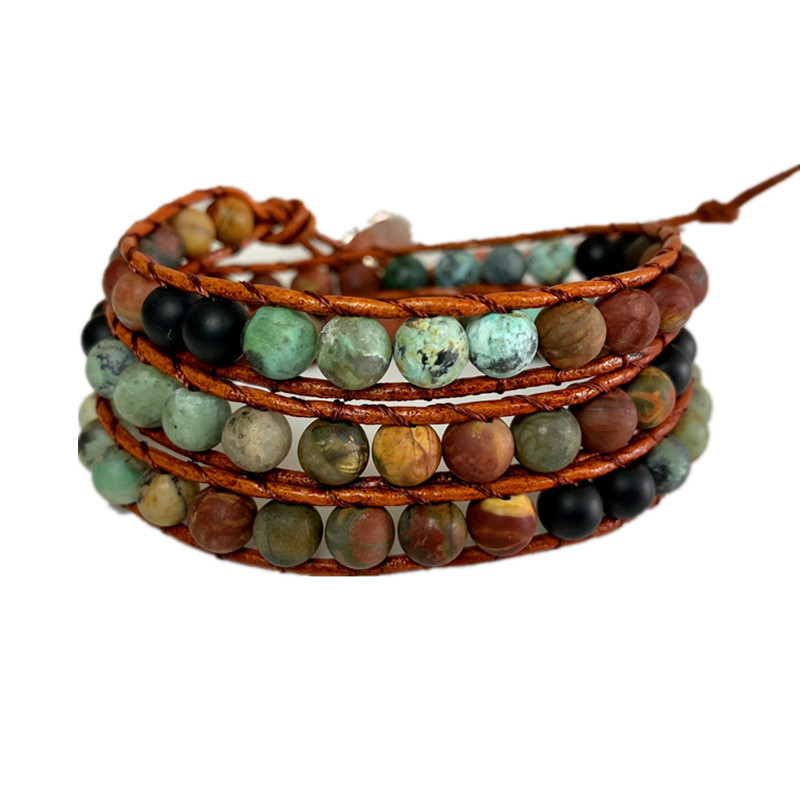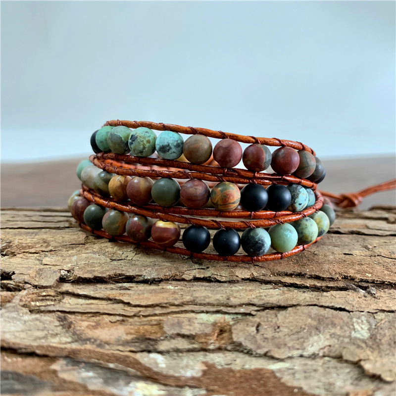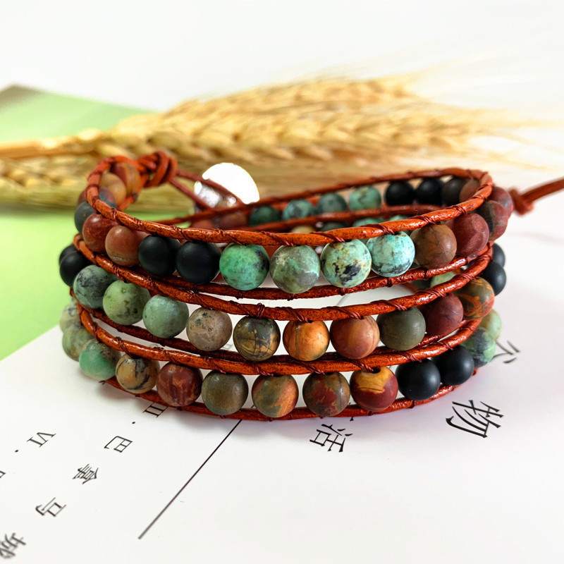 Name: Multi-layer leather bracelet Size: The length of the beads is 51cm, the total length is about 61cm, there is a little error, please mainly receive the actual objects” Material: alloy buttons, leather rope, agate