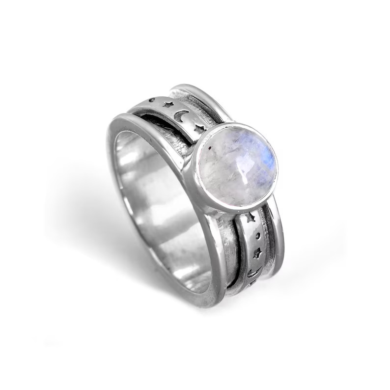 Bohemian Moonstone Star And Moon Ring