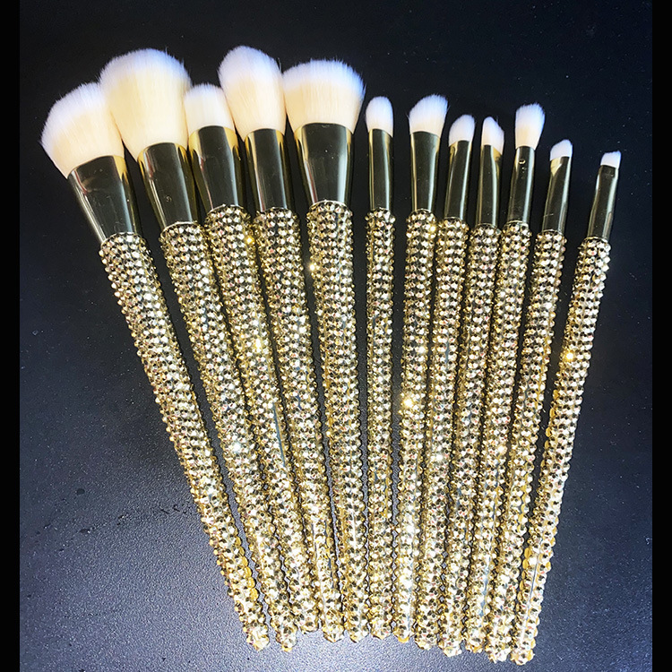 Name: 12-piece makeup brush set with resin diamonds